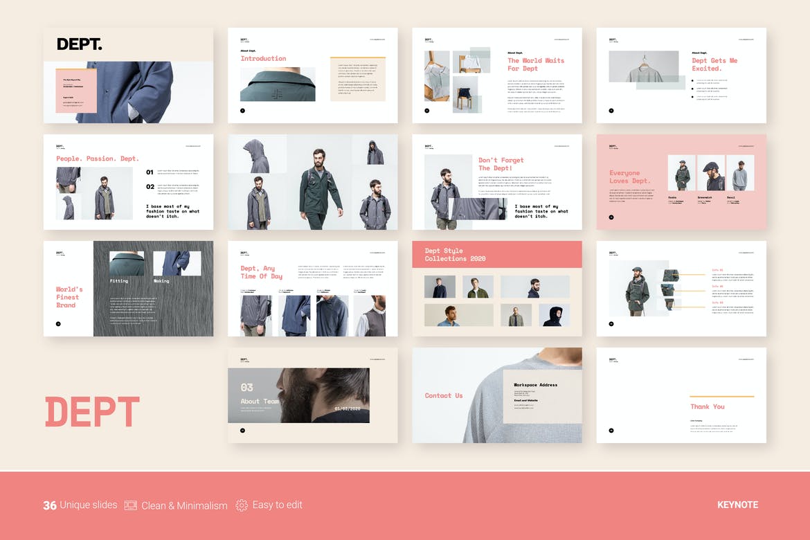 Dept Lookbook Presentation template is a clean minimalism design with a focus on flexibility. Simply replace images with your own or your clients.